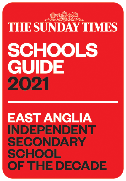 In 2021, we were honoured to be named The Times Independent School of the Decade for East Anglia. They acknowledged our leadership and vision in adopting digital technology so early, stating, "The brilliance of that initiative bore spectacular fruit in March [2020] when schools closed down practically overnight and learning shifted online", where our students benefited from our decision to "embrace digital learning and place the school at the cutting edge", just as they had from the "more general quest for both a rounded education, excellent pastoral care and consistently high standards."
